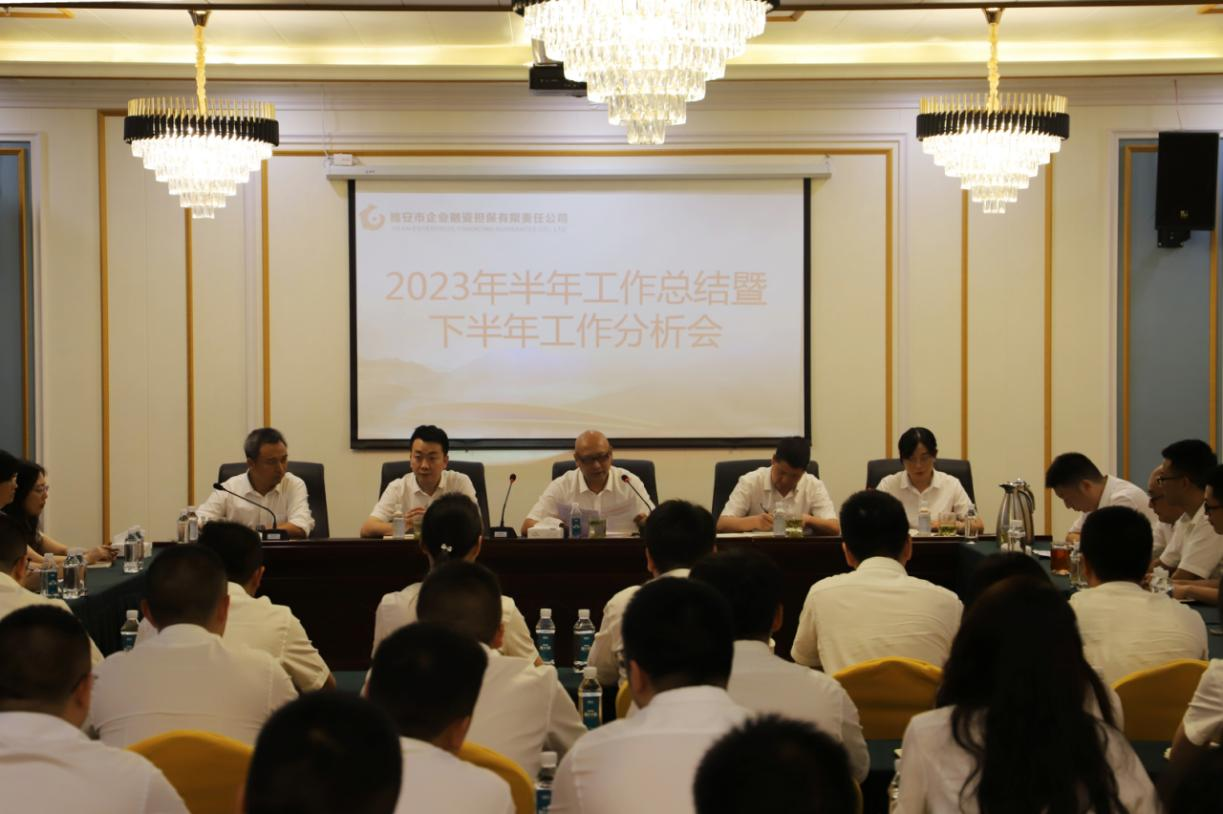 8月3日,市擔(dān)保公司黨支部書記、董事長尹福健主持召開2023年半年工作總結(jié)暨下半年工作分析會,總結(jié)公司上半年各項工作,分析研判經(jīng)營發(fā)展形勢,安排部署下半年工作任務(wù),進(jìn)一步統(tǒng)一思想,搶抓機遇,堅定信心,狠抓落實,確保全面完成今年各項目標(biāo)任務(wù)。公司全體員工參加會議。